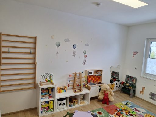 Hier erwarten die Kinder liebevoll eingerichtete Räumlichkeiten mit kindgerechter Ausstattung sowie ein sicherer Garten mit Spielturm und Sandkasten, der zu Bewegung, Spiel und Entdeckung einlädt.